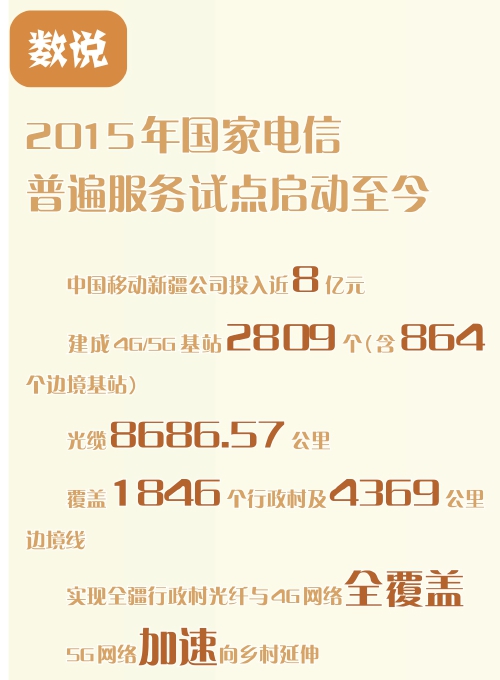 2025年是新疆维吾尔自治区成立70周年,也是电信普遍服务工作开展10周年。多年来,自治区党委、政府一直高度重视中央单位帮扶工作,把帮扶工作作为巩固拓展脱贫攻坚成果、推进乡村全面振兴的重要力量。新疆作为“一带一路”核心区,在中央单位的帮扶下,十年来在信息基础设施建设、数智技术赋能经济发展等领域取得突破性进展。
