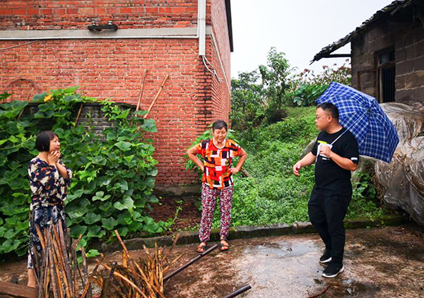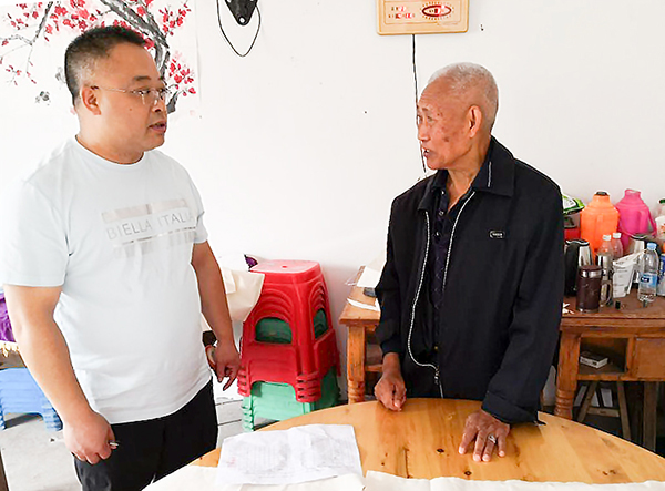 程昱宏( 左)走村串户与村民谈心 摄影 陈华华