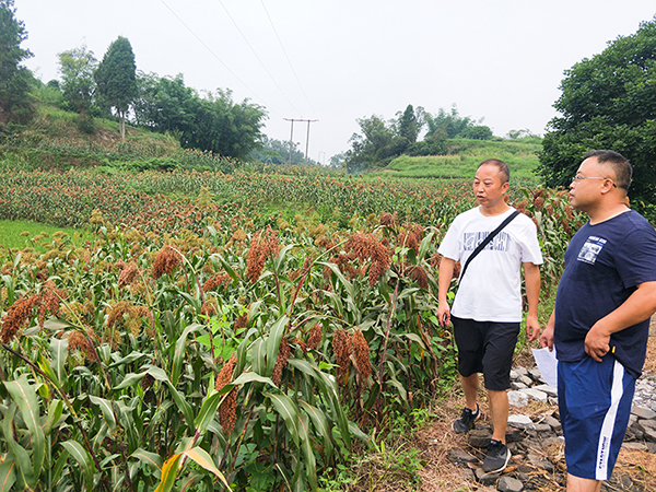 程昱宏(右)了解高粱产业情况 摄影 陈华华
