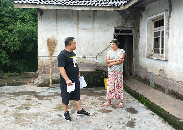 程昱宏(左)入户了解村民情况 摄影 陈华华
