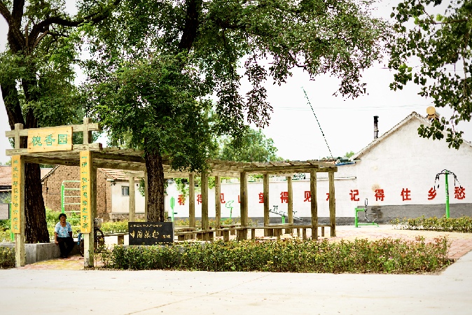 在北甲庄村,有一座中国银行捐建的休闲广场,名叫“槐香园”,寓意为怀念故乡。门两侧的“一粥一饭当思来之不易,半丝半缕恒念物力维艰”,胡庭法说,我想用文化的力量,不断熏陶和提醒村民,一切的一切,都来之不易,一切的一切,都要珍惜。