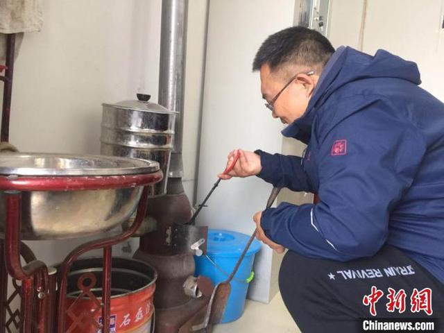 清晨的黄土塬,秋风瑟瑟。甘肃庆阳市镇原县太平镇彭阳村部,王峰手持炉铲给小火炉加了几块煤,他拍了拍手上的炉灰对中新网记者说,“塬上风大,晚上小火炉很管用。”
