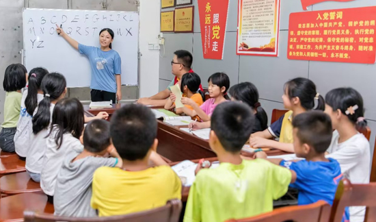 大桥村大学生高彩莲利用暑假辅导村里的小朋友。吴庚冬摄