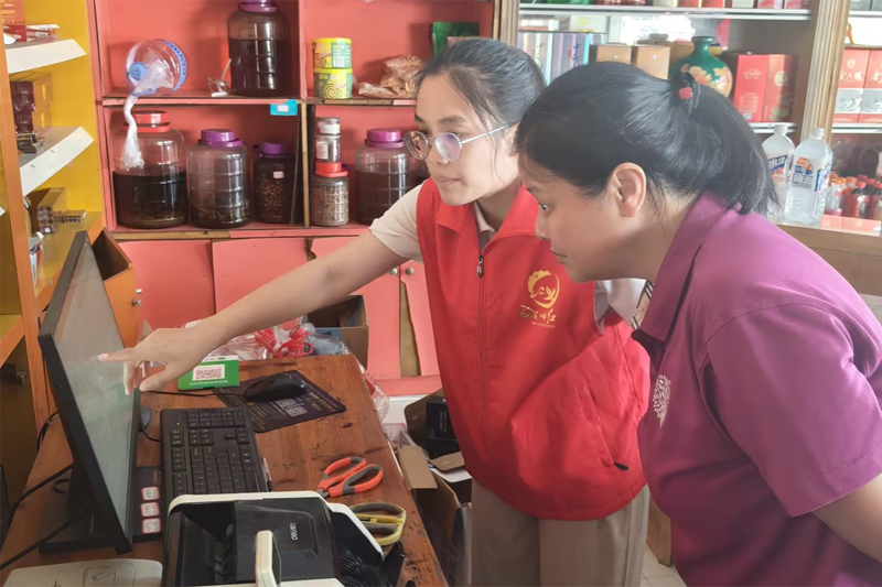 胡林莉在指导零售户使用云POS系统。莫家伟摄