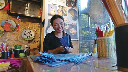 谢少花在做手工艺产品。