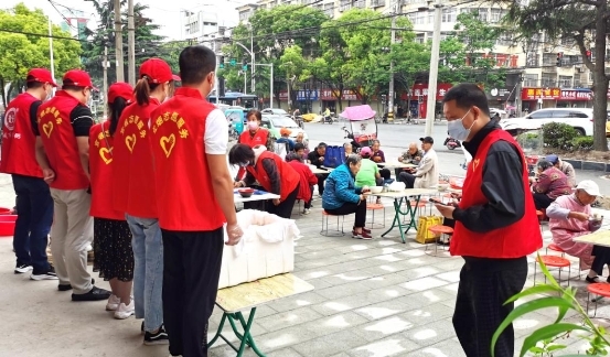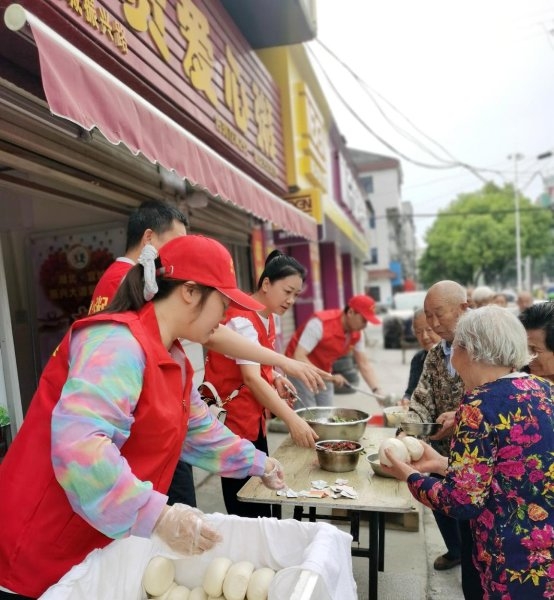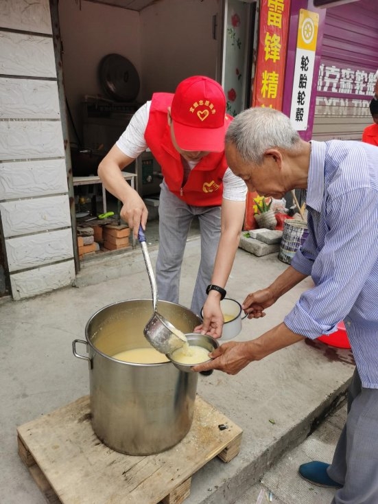 宜城烟草志愿服务队两年前加入,以支部为单位,全体党员轮流参加爱心粥铺活动。“每次看到老爷爷老奶奶吃完早餐开心的样子,都感觉特别温暖,”党员志愿者李文文看着正在就餐的人群,感慨地说,“真的很有意义!”