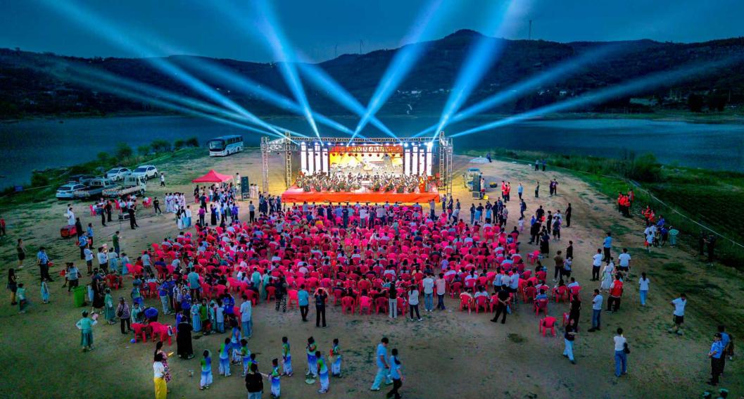 暮色渐浓,翼云湖畔的灯光渐次亮起,村民们扶老携幼,共赏一场别开生面的交响音乐会。