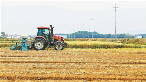 11月20日,南昌市新建区石埠镇90后种粮大户周聪正驾驶油菜一体化播种机械,播种高产优质的油菜品种。利用现代农机,周聪可一次性完成1800多亩田地的旋耕、灭茬、开沟、起垄、播种、施肥等多项作业。记者 徐立鸣摄