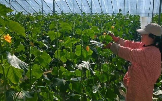 看到效益好,二期很快跟上。“又添了4栋薄膜温室、68座春秋拱棚,还建了制冰车间和恒温库。”村干部介绍说,“夏天种白芸豆、贝贝南瓜,按照寿光企业的标准种植,成熟后直接产地直发寿光市场,去年二期光这两样就卖了240万元!”
