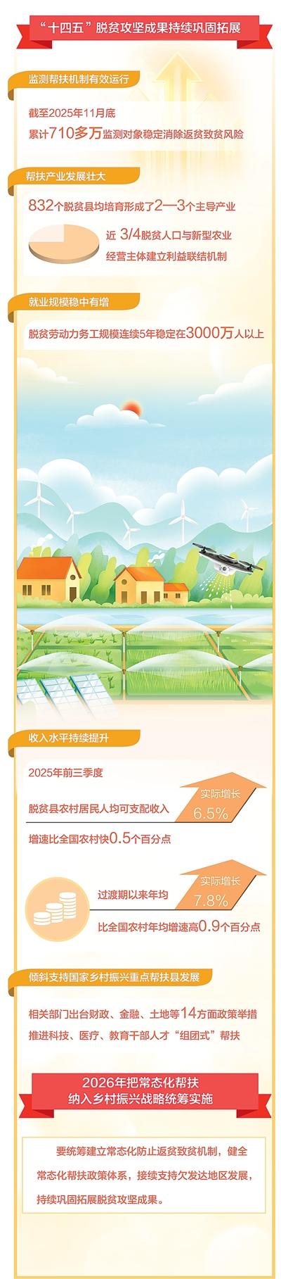 “十五五”时期是巩固拓展脱贫攻坚成果同乡村振兴有效衔接过渡期后的第一个五年。2026年是开展常态化帮扶的第一年。本期记者采访5位一线干部群众,请他们谈谈常态化帮扶新阶段的新打算、新谋划,以及如何持续巩固拓展脱贫攻坚成果,继续守牢不发生规模性返贫致贫底线。