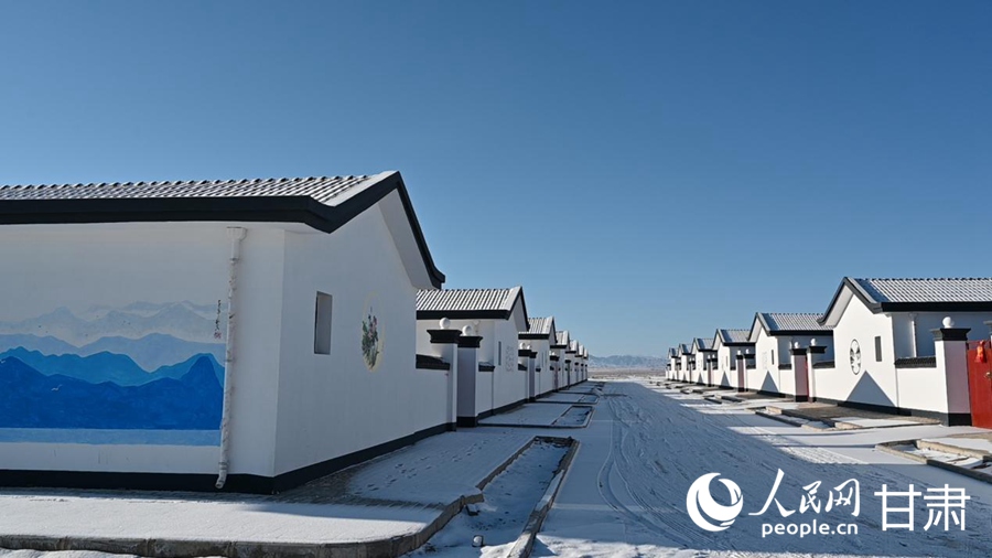 雪后初霁,甘肃省金昌市永昌县红山窑镇水泉子村生态及地质灾害避险搬迁安置点内,一派静谧祥和。崭新整齐的民居依序而立,色彩鲜明的墙绘点缀其间,平坦宽阔的水泥路直通家家户户。
