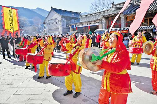 2月3日,阜平县骆驼湾村小广场上,一场民俗文化演出正在进行。本报记者田 明摄