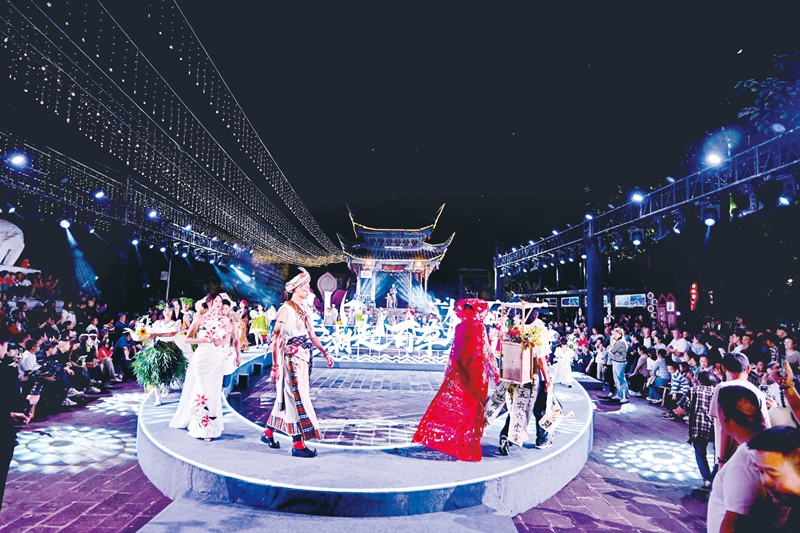 艺术村长辅导村民就地取材制作的时装大放异彩。水磨镇政府供图