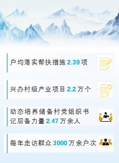 全区驻村工作队一手抓巩固脱贫成果、一手抓助力乡村振兴,把发展成果转化为争取人心、巩固人心成果。防止返贫,不落一人。驻村工作队坚持底线思维,精准开展动态监测,紧盯每一个监测对象、每一个有返贫致贫风险的个体,应纳尽纳、应扶尽扶,“一户一策”做好开发式帮扶和兜底性保障,户均落实帮扶措施2.39项,推动脱贫基础更加稳固、脱贫成效更可持续。立足所驻村资源禀赋和产业基础,因地制宜发展特色富民产业,帮助兴办村级产业项目2.2万个,引进中小微企业6.33万家,引导农牧民党员创办致富项目2.3万个,健全联农带农富农机制,拓宽增产增效增收渠道,让群众的日子越过越红火。借力用好跨村联建、兵地共建、区内协作、援疆帮扶等多种渠道,增强村级集体经济发展造血功能,通过股份合作、就业带动、入股分红等多种方式,积极推动资源变资产、资金变股金、农民变股东,推动集体经济稳定增收。大力扶持自主创业、发展产业、稳定就业,培育新型农业经营主体、创业致富带头人21.63万名,协助发展特色种植养殖180万余户、庭院经济及林果示范园220万余户,年均组织农村劳动力外出务工275万人以上,把发展成果落实到改善民生、惠及当地、增进团结上。