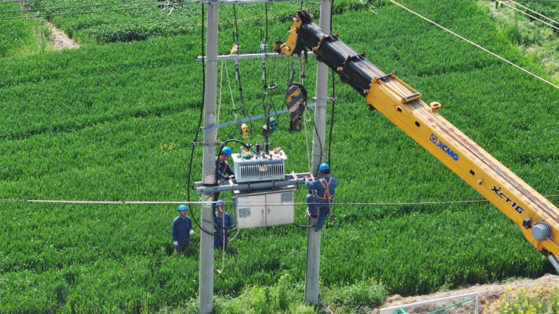 4月19日,国网蚌埠供电公司在蒲林村开展新旧变压器更换电力配套提升工作。曹广宇 摄